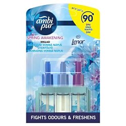 Ambi Pur 3Volution Spring Awakening nepretržite odstraňuje pachy a strieda 3 vzájomne sa doplňujúce vône pre sviežosť, ktorú budete vnímať. Vydrží až 90 dní (pri používaní 12 hodín denne s nastavením najnižšej úrovne odparovania). Objavte krásu Spring Awakening s intenzívnejšou vôňou s väčším dosahom, ktorá naplní miestnosť vôní. Spring Awakening je ľahká vôňa zelene inšpirovaná jarnou prirodzenou sviežosťou Lenoru. Vnímajte pokoj, ktorý vás obklopí, keď sa vzduch naplní touto čistou a decentnou vôňou. U bežných elektrických osviežovačov si na vône rýchlo zvykneme a prestaneme ich vnímať. Ambi Pur Osviežovač vzduchu 3Volution sviežosť obnovuje tým, že sa každých 45 minút automaticky striedajú 3 ° vzájomne sa doplňujúce, vysoko kvalitné vône. Náplne Ambi Pur 3Volution používajte s odparovacím strojčekom 3 Volution, aby ste naplnili váš domov sviežosťou a vôňou, ktorú budete vnímať deň čo deň, týždeň čo týždeň. 3Volution taktiež umožňuje nastaviť intenzitu odparovania vône.