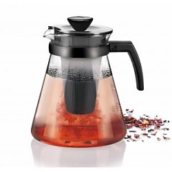 Kanvica na prípravu a podávanie všetkých druhov čaju a čajových nápojov. Vybavená hlbokým sitkom pre vylúhovanie čerstvej mäty, medovky, zázvoru, sušených šípok, ovocia apod. a extra jemným sitkom pre vylúhovanie všetkých druhov sypaného čaju. Vyrobená zo žiaruvzdorného brosilikátového skla, vhodná pre plynové, elektrické a sklokeramické šporáky aj pre nalievanie vriacej vody z varných kanvíc, vhodná do mikrovlnky. Rukoväť, viečko a sitká z odolného plastu. Umývajte bežnými čistiacimi prostriedkami, neumývajte v umývačke. 3 roky záruka. Objem 1,7 litra.