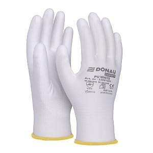 rukavice z kvalitného polyesterového úpletu v bielej farbe, v oblasti úchopu potiahnuté bielym polyuretánom