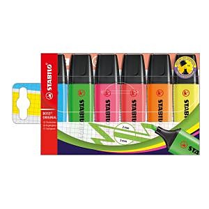 Sada 6 zvýrazňovačov s vysokým výkonom písania a dlhou životnosťou. Univerzálny atrament na vodnej báze, mäkký hrot.