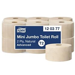 Tork Mini Jumbo systém je časovo efektívny a znižuje náklady, pričom ponúka oveľa väčšie množstvo toaletného papiera ako štandardný kotúč. Tork Mini Jumbo toaletný papier v kotúči Advanced dvojvrstvový výborne vyvažuje náklady a potrebný výkon a je ideálny pre stredne až vysoko frekventované prostredia. Hygienický papier je vyrobený zo 100 % recyklovaných vláken.
