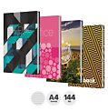 Záznamové knihy A4 sú vyrobené z bezdrevného písacieho papiera. Obálka je vyrobená z tvrdého kartóna, ktorý je potlačený rôznymi farebnými motívmi a potiahnutý laminom. Linajková - 1