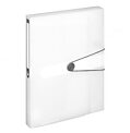 Obal z pevného polypropylénu s priehľadnou prednou stranou a kovovým vyklápacím klipom v čiernej farbe. Formát A4. Kapacita 1 - 30 listov. Väčšie balenie 25 ks. Farba biela.