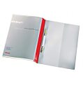 Polopriehľadný obal z polypropylénu hrúbky 480 um. Tri klopy, vymeniteľná etiketa. Formát A4. Väčšie balenie 25 ks.Farba: červená