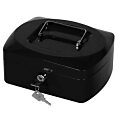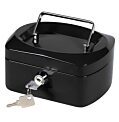 Uzamykateľná pokladnička s tvarovaným úchytom, plastovou priehradkou na mince a 2 kľúčami. Materiál pevná oceľ. Rozmery 155 × 75 × 120 mm. Farba čierna.