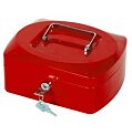 Uzamykateľná pokladnička s tvarovaným úchytom, plastovou priehradkou na mince a 2 kľúčami. Materiál pevná oceľ. Rozmery 205 × 85 × 160 mm. Farba červená.