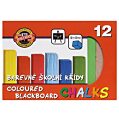 Farebné kriedy na školské tabule. Rozmery 12 x 12 x 100 mm. Dodávané v sade 12 farieb (biela, okrová, oranžová, červená, karmínová, svetlomodrá, tmavomodrá, svetlozelená, tmavozelená,