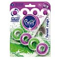 Závesný plastový košík do WC s vymeniteľnou tuhou náplňou 3 v 1, ktorá likviduje prostredie na množenie baktérií, bráni tvorbe vodného kameňa a zanecháva dlhotrvajúcu sviežu vôňu.V