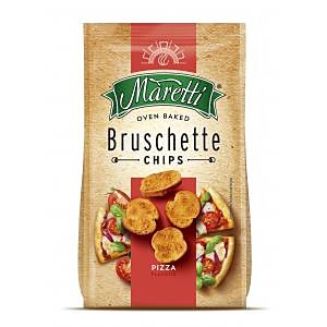 PŠENIČNÁ múka, Rastlinný olej (palmový oleín, antioxidant: extrakty z rozmarínu), Extrudovaná kukuričná múka, Ochucujúca zložka: pizza 5,5% (sušená SRVÁTKA, Jedlá soľ, Zvýrazňovače cuti: glutaman sodný, guanylan disodný, inozinan disodný; Cukor, Paradajkový prášok 7%, SYROVÝ prášok 6,5%, Cibuľový prášok 5%, Sušené oregano, Dextróza, Maltodextrín,