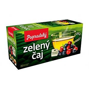 Aromatizovaný zelený čaj s príchuťou čučoriedka a brusnica, porciovaný v nálevových vreckách.