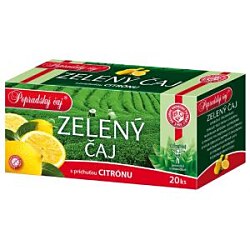 Aromatizovaný zelený čaj s príchuťou citrón. Porciovaný v nálevových vreckách.