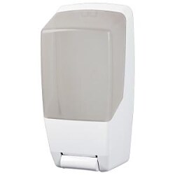 Dávkovač na abrazívne mydlo. Celoplastový, biely, s plexisklovým priezorom, ľahko ovládateľný a nenáročný na údržbu.