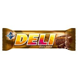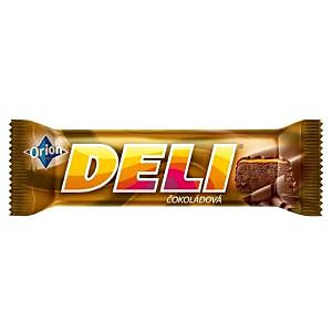 Tyčinka 60 % s karamelom 15 % máčaná v horkej čokoláde 25 %. Tyčinka s karamelom máčaná v horkej čokoláde. Najlepšie je zostať nad vecou. A s tyčinkou DELI vo vrecku to ide skutočne ľahko. Táto šťavnatá čokoládová tyčinka s jemnou konzistenciou a skvelými príchuťami vznikla už v roku 1980. Vychutnajte si preto jemnú našľahanú čokoládovú náplň s tenkou vrstvou karamelu v lahodnej horkej čokoláde. DELI čokoládová obsahuje dvojitú porciu čokolády.