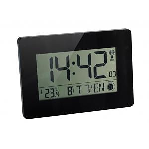 Hodiny v čiernej lakovanej úprave s výbornou čitateľnosťou. Riadené rádiovým signálom DCF s automatickým nastavením času a dátumu podľa najpresnejších hodín sveta a automatickou zmenou letného a zimného času. Digitálne zobrazenie času vo formáte 12 / 24 hodín, dátum (deň, mesiac), meranie vnútornej teploty, zobrazovanie je na výber zo 7 jazykov (anglický, nemecký, francúzsky, taliansky, dánsky, španielsky, holandský). Rozmery 229 × 162 mm, hrúbka 27 mm. Možnosť postaviť na stôl alebo zavesiť na stenu. Súčasťou balenia sú 2 batérie AA. Farba čierna.