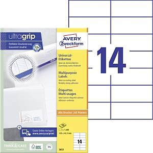 Biele univerzálne etikety vhodné na každodenné použitie v atramentových a laserových tlačiarňach a kopírovacích strojoch. Vďaka inovatívnej technológie ultragrip sa môžete spoľahnúť na bezchybné natiahnutie archu a tlač bez zasekávania. Bezpečnostný okraj QCT zabraňuje zanášaniu tlačiarne lepidlom. Pre laserové tlačiarne testované a certifi kované TÜV SÜD. Vysoká lepivosť na rôznych povrchoch. Ostrá tlač bez bez rozmazávania. Etikety sú vyrobené spôsobom šetrným k životnému prostrediu, majú certifi káciu FSC®, sú bielené bez použitia chlóru. Šablóny a softvér pre jednoduchú a rýchlu tlač etikiet k dispozícii zdarma. U niektorých rozmerov systém QuickPEEL™ na rýchlejšie odlepenie etikiet. Formát A4. Balenie 100 hárkov.