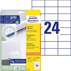 Biele univerzálne etikety vhodné na každodenné použitie v atramentových a laserových tlačiarňach a kopírovacích strojoch. Vďaka inovatívnej technológie ultragrip sa môžete spoľahnúť na bezchybné natiahnutie archu a tlač bez zasekávania. Bezpečnostný okraj QCT zabraňuje zanášaniu tlačiarne lepidlom. Pre laserové tlačiarne testované