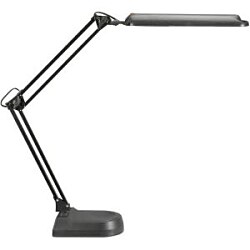 Lampa so základňou energeticky úspornej triedy „A“ s LED žiarovkami so životnosťou cez 20 000 hodín bez možnosti ich výmeny. Svietivosť 2 000 luxov pri vzdialenosti 35 cm od stola, svetelný tok 400 lumenov, extrémne nízka spotreba energie cca 9 kWh/ 1 000 h. Sklopná a otočná plastová svetelná hlava. Veľkosť hlavy cca 33 × 7 cm, stabilný podstavec 22 × 14,5 cm so závažím Materiál kov a plast. Dĺžka spodného ramena 33 cm, horného 34 cm, výška normálnej pracovnej pozície 45 cm, dĺžka kábla 1,8 m. Farba čierna.
