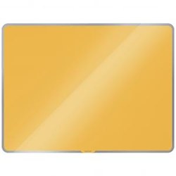 Sklenená magnetická tabuľa na písanie Leitz Cosy je nástroj na písanie poznámok, ktorý možno používať opakovane. Píšete jednoducho pomocou priloženej suchej fixky, potom stačí zotrieť a začať znovu. Povrch je vyrobený z tvrdeného bezpečnostného skla s ultra stierateľnosťou a vysokou odolnosťou proti atramentovým fľakom, zvyškom po fixkách, poškriabaniu a preliačeninám. Vďaka minimalistickému dizajnu bez rámu a príjemným farbám pridáte svojmu pracovnému priestoru štýl a farbu.Jednoduchá montáž vďaka skrytému 4-rohovému montážnemu systému a montážnej súprave (2 skrutky a 2 hmoždinky). Rozmery 60 x 80 cm. Farba teplá žltá. Dodáva sa s handričkou z mikrovlákien na jednoduché čistenie a s čiernym popisovačom na suché stieranie, ktorý má na viečku vstavaný čistiaci kus. Magnetický popisovač drží priložený kdekoľvek na tabuli. Odporúčame občasné vyčistenie, aby sa zabezpečilo, že povrch tabule zostane dokonalý.
