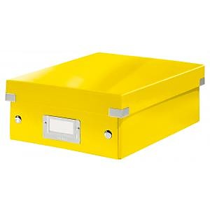 Malá štýlová skladacia krabica s vekom a s rámčekom na štítok. Na usporiadanie nabíjačiek, káblov a ďalšieho vybavenia kancelárie. Veľkosť S. Na prvý pohľad vidíte, čo sa vojde dovnútra! Výška krabice bola navrhnutá tak, aby vám poskytla dostatok priestoru na uloženie príslušenstva a zároveň zabránila skladaniu vecí na seba. Na vylepšenie usporiadania obsahu krabice použite priložený vnútorný systém priehradiek. Môžete rozdeliť krabicu na 2 alebo 3 časti a zabrániť tak miešaniu káblov alebo fotiek. Inteligentná skladacia konštrukcia: rýchle a jednoduché zloženie bez nutnosti použitia skrutiek a možnosť opätovného rozloženia na úsporu miesta, keď krabicu práve nepotrebujete. Moderný vzhľad a farby na skrášlenie vašej kancelárie alebo domova. Lesklé vyhotovenie vytvára prvotriedny vzhľad a umožňuje dlhodobé používanie a jednoduché utieranie prachu. Rámček na štítok pre jednoduché označenie obsahu. Materiál pevný kartón potiahnutý polaminovaným papierom. Farba žltá.