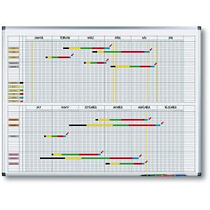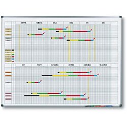 Ročný plánovač v dvoch častiach. Delenie do 365dňových okienok, 7 dní v týždni. Pre plánovanie do 33 ľudí/ objektov, ak je použitý ako 12mesačný plánovač a do 66 ľudí/ objektov, ak je použitý ako 6mesačný plánovač. Keďže nie sú predtlačené názvy mesiacov, plánovanie môže začať ľubovoľným mesiacom. Magnetický popisovateľný povrch. Sada príslušenstva obsahuje: 4 stierateľné popisovače TZ 111, 72 magnetických menoviek s bielymi štítkami a sadu 10 mm magnetických symbolov.