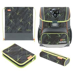 Školská taška s výbavou, ergonomicky tvarovaným a priedušným polstrovaním chrbta, nastaviteľnými ramennými popruhmi, výškovo nastaviteľným hrudným pásom, hlavným vreckom s priestorom na knihy, bočnými vreckami s elastickými pásikmi, predným vreckom na zips, stabilnou spodnou doskou s nožičkami, pohodlnou rukoväťou a reflexnými prvkami Oralite. Hmotnosť 950 g, objem 16 l, rozmery 37 x 31 x 22 cm. Vode-odolná, bez PVC, výbava: peračník, vrecko na prezuvky, okrúhle puzdro. Certifikát ergonómie 2023 a 2025. Materiál: polyester.