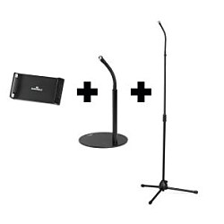 • Stojan na stôl a podlahu s držiakom na tablet a mobilný telefón, vybavený flexibilným ramenom a guľovým kĺbom