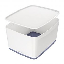 Výnimočne pevný box s vekom z modulárneho systému Leitz MyBox® z kvalitného materiálu. Dvojfarebné prevedenie a lesklý povrch vytvárajú unikátny dojem. Je určený na rýchle uskladnenie dokumentov a ďalších predmetov. Odolný voči poškriabaniu a vodotesný, s guľatými rohmi pre jednoduché čistenie. Nenápadný okraj drží veko v zavretej pozícii a pritom sa ľahko otvára. Pri nepoužívaní je možné viaceré boxy stohovať na seba a šetriť tak miesto. Box dobre dopĺňa ostatné produkty najmä dvojfarebného radu WOW.Rozmery 318 × 385 × 198 mm. Objem 18 litrov.