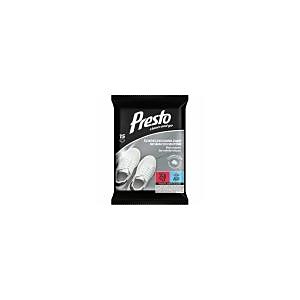 PRESTO CLEAN - VLHČENÉ OBRÚSKY NA BIELU OBUV 15 KS. Presto Clean vlhčené utierky na biele topánky sú praktickým riešením na rýchle a efektívne čistenie a ošetrovanie bielych topánok, ktoré sú náchylné na špinu a škvrny. Tieto špeciálne navrhnuté utierky okamžite odstraňujú nečistoty, prach a škvrny z povrchu topánok, čím udržiavajú ich pôvodnú belosť a čistý vzhľad. Vďaka svojmu zloženiu Presto Clean utierky šetrne čistia rôzne materiály, vrátane kože, syntetických materiálov a textílií, bez toho, aby zanechávali škvrny alebo stopy. Sú ideálnym pomocníkom na rýchle čistenie v teréne alebo doma, a zároveň zanechávajú topánky svieže a žiarivé. Ich kompaktné balenie je vhodné na cesty, takže si môžete svoje biele topánky udržiavať čisté kdekoľvek a kedykoľvek. Hlavné vlastnosti: Efektívne odstraňujú prach, špinu a škvrny. Vhodné na biele kožené, syntetické a textilné topánky. Nezanechávajú šmuhy ani stopy Jednoduché použitie - ideálne na cesty alebo rýchle čistenie.