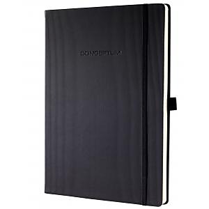 Zápisník s elastickou gumičkou, chrániacou pred nechceným otvorením. Pevná väzba s jemným ryhovaním. Čistý a jednoduchý dizajn až do posledného detailu. Moderný, elegantný, so zameraním na to podstatné. To je CONCEPTUM®, víťaz medzinárodnej ceny za dizajn. Nóbl sofi stikované zápisníky jedinečného štýlu, ktorý môžete vidieť aj cítiť, sú vhodné pre profesionálnu, ako aj pre osobnú potrebu. S citlivosťou volené materiály a vynikajúca kvalita sú skombinované so skutočnou eleganciou. Zápisníky sú vybavené osobným adresárom, uškom na pero, 2 lacetkami, vreckom na uchovanie materiálov s miestom na vizitku, k dispozícii je 20 perforovaných strán pre potreby vytrhnutia poznámok, strany v zápisníku sú číslované.Formát A4+, úprava linajková. Rozmery 225 x 315 mm. Počet strán 194. Farba čierna.