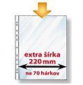 Obaly s eurodierovaním vhodné na zakladanie materiálov rozšíreného formátu A4. Povrch matný. Otvor zhora. Vnútorné rozmery obalu 304 × 220 mm. Balené v sáčku. Hrúbka 100 mic. Balenie 25