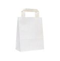 Papierová taška na univerzálne použitie. Farba biela. Ušká stáčané. Cena za kus. Papier 100 g. Rozmery v mm(š × h × v) 180 × 80 × 240.