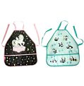 Detská zástera na maliarske a tvorivé potreby, 2 rôzne vzory, veľké predné vrecko s 3 vreckami na maliarske a tvorivé potreby, zapínanie na suchý zips pri krku a zaväzovanie vzadu, vrátane