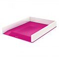 Stohovateľný kancelársky odkladač na dokumenty, časopisy a zložky v dvojfarebnom prevedení v metalických farbách WOW s lesklým povrchom. Farba ružová.