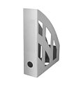Plastový stojan na časopisy zaoblený dizajn - odolný materiál, miesto na etiketu na chrbte. Farba sivá.