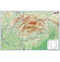 Mapa Slovenska pod zataveným transparentným obalom z PVC fólie. Postranné klopy na založenie odkazov a poznámok. Rozmery: 40 x 60 cm