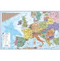 Mapa Európy pod zataveným transparentným obalom z PVC fólie. Postranné klopy na založenie odkazov a poznámok. Text v českej verzii. Rozmery: 40 x 60 cm