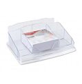 Priehľadný organizér na stôl na písacie potreby a drobné kancelárske potreby s poznámkovou kockou. Výška 14 cm. Farba transparentná.