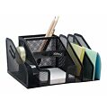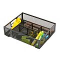 Organizér s 8 priehradkami na kancelárske potreby vyrobený z kovovej sieťoviny potiahnutej lakom. Rozmery 345 x 290 x 295 mm. Farba čierna.