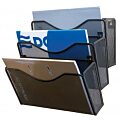 Sada kovových políc na dokumenty, korešpondenciu, časopisy, vyrobená z kovovej sieťoviny na zadnej stene, dva špeciálne otvory pre pripevnenie na stenu, rozmery: 315x440x120mm, čierna.