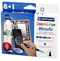 Sada 8 metalických odtieňov a 1 biely popisovač určený k dekorácii rôznych materiálov (lakový papier, kov, sklo, fólia, keramika, kraslica, kameň). Svetlostály pigmentový atrament na vodn