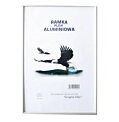 Rámček vyyrobený z odolného hliníka, má priehľadné plastové predné sklo. Zadná strana z HDF drevenej dosky. Rozskrutkovanteľné rohy v zadnej časti. Priložený háčik na zavesenie. Rozm