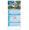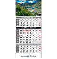 Rozmery: 295 x 925 mm. ROZSAH: 3 x 12 listov. KALENDÁRIUM: 3-mesačné s menami SK, názvy mesiacov a dní v SK. VÄZBA: 1x šitá s perforáciou, 2x špirála. REKLAMNÁ POTLAČ: 2 x 295 x 30 mm, 2