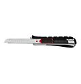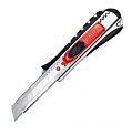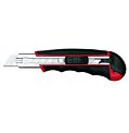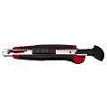 Robustný profesionálny rezač s gumeným vrúbkovaným úchytom, pevným celokovovým vedením noža a automatickým uzamknutím noža. Po vytiahnutí opotrebovaného noža sa zasunutím bežca nain