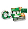 Moderný a spoľahlivý dávkovač lepiacej pásky, ktorý umožňuje odvíjanie rôznych typov lepiacich pások s použitím jednej ruky. Súčasťou balenia je neviditeľná páska Scotch Magic rozm