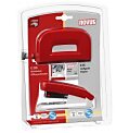 Malá kancelárska zošívačka Novus MINI s jednoduchým vedením spiniek a integrovanou kovovou rozošívačkou. Vhodné spinky 24/ 6 a 26/ 6. Hĺbka zošívania 2,5 cm, kapacita zošívania 12 list