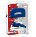 Ľahká zošívačka určená pre malé kancelárie s kovovým zásobníkom a jednoduchým vedením spiniek. Kapacita náplne 100 spiniek 24/ 6 alebo 150 spiniek 26/ 6. Hĺbka zošívania 6,5 cm. Hmot