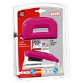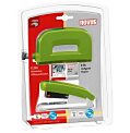 Malá celokovová stolová zošívačka v dizajne HARMONY. Vrchný diel z plastu, kovový zásobník s jednoduchým vedením spiniek. Kapacita náplne 100 spiniek 24/-6 alebo 150 spiniek 26/-6. H