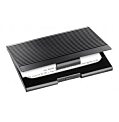 Elegantná matná čierna krabička na vizitky a magnetické karty z kvalitného kovu na bezpečné skladovanie a dokonalú ochranu až 20 vizitiek max. rozmerov 91 × 56 mm. Drážkovaný povrch je p