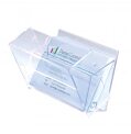 Priehľadný box na vizitky vyrobený z tvrdého plastu s praktickou doplnkovou funkciou: pri zatvorení bezpečne uchováva vložené vizitky a pri otvorení sa zmení na displej s vizitkami. Kapacit