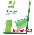 Kancelársky papier štandardnej kvality, vhodný na čiernobielu tlač a nenáročnú farebnú tlač na atramentových i laserových zariadeniach. Belosť papiera CIE 153. Formát A3, Hrúbka 80 g/m2